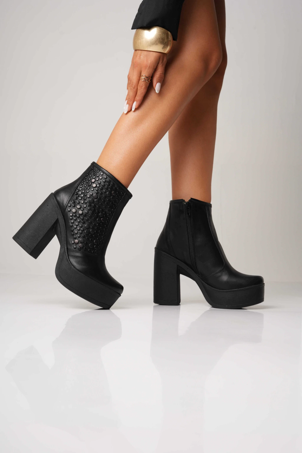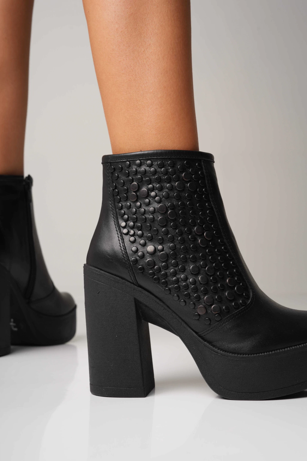 BOTA DE CUERO CON TACO ALTO Y TACHAS