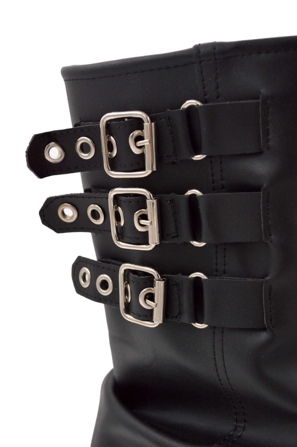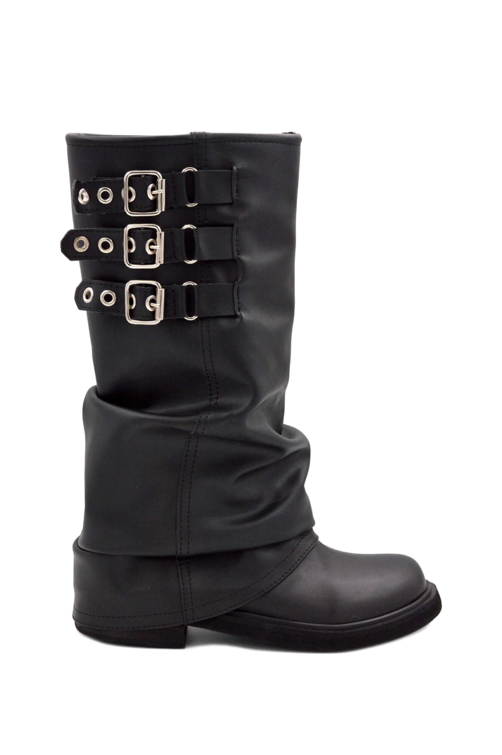 Botas de caña alta / bucaneras con hebillas y cierre interno.