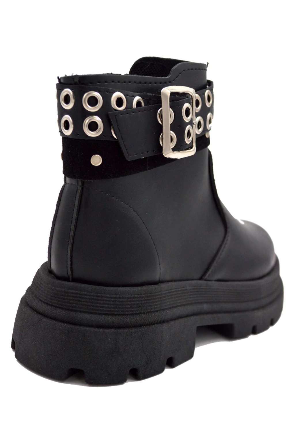 BOTA DE ECO CUERO CON HEBILLA, OJALES Y PLATAFORMA