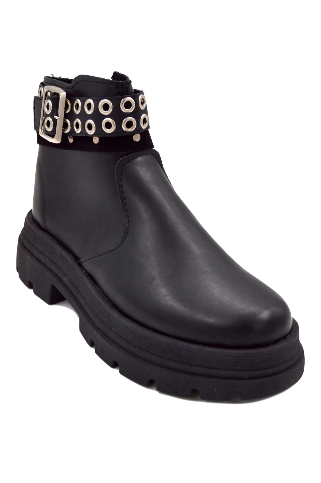 El detalle con tachas metálicas y hebilla aporta un estilo rocker con personalidad.