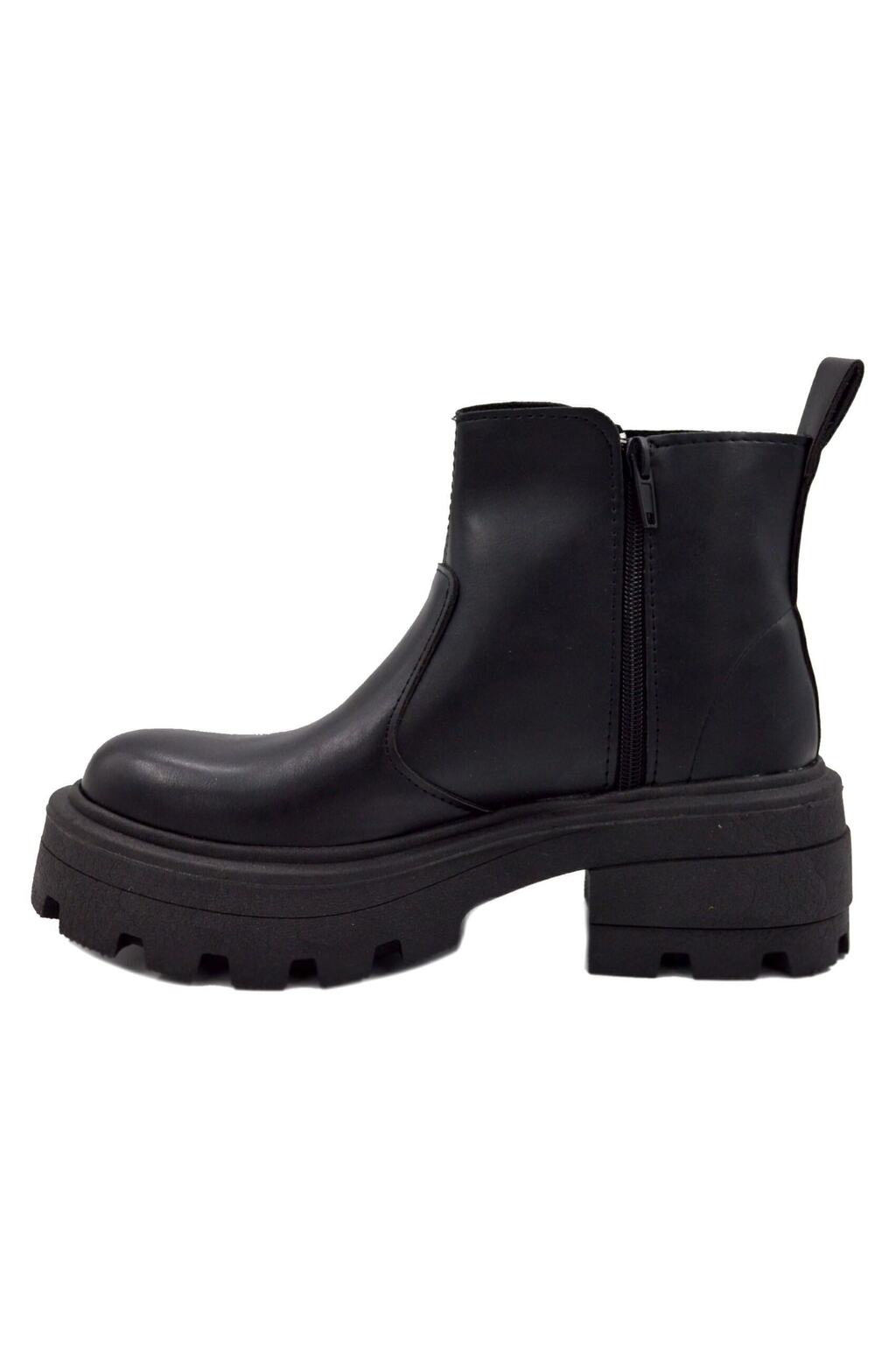 Botas modernas fabricadas en ecocuero, diseñadas para ofrecer estilo y comodidad. Presentan una caña de 10 cm que brinda cobertura y diseño versátil, junto a una plataforma sólida de 5 cm que aporta altura sin sacrificar estabilidad.