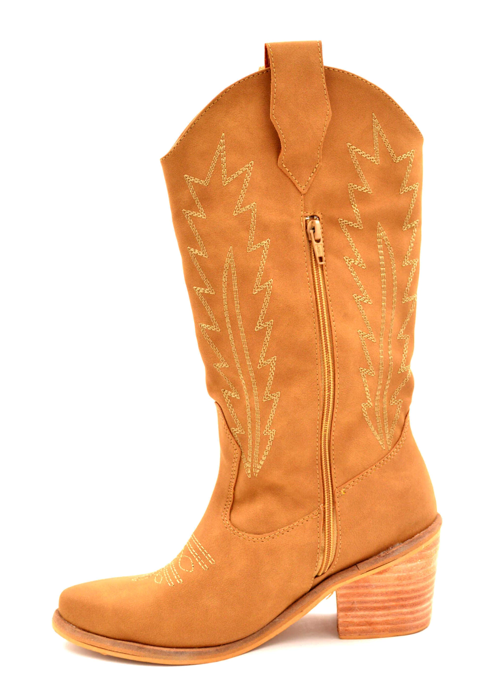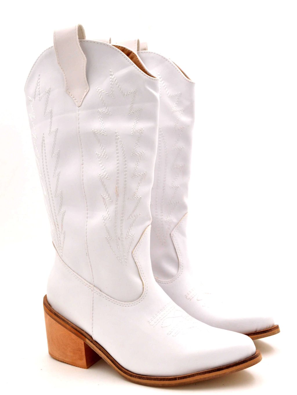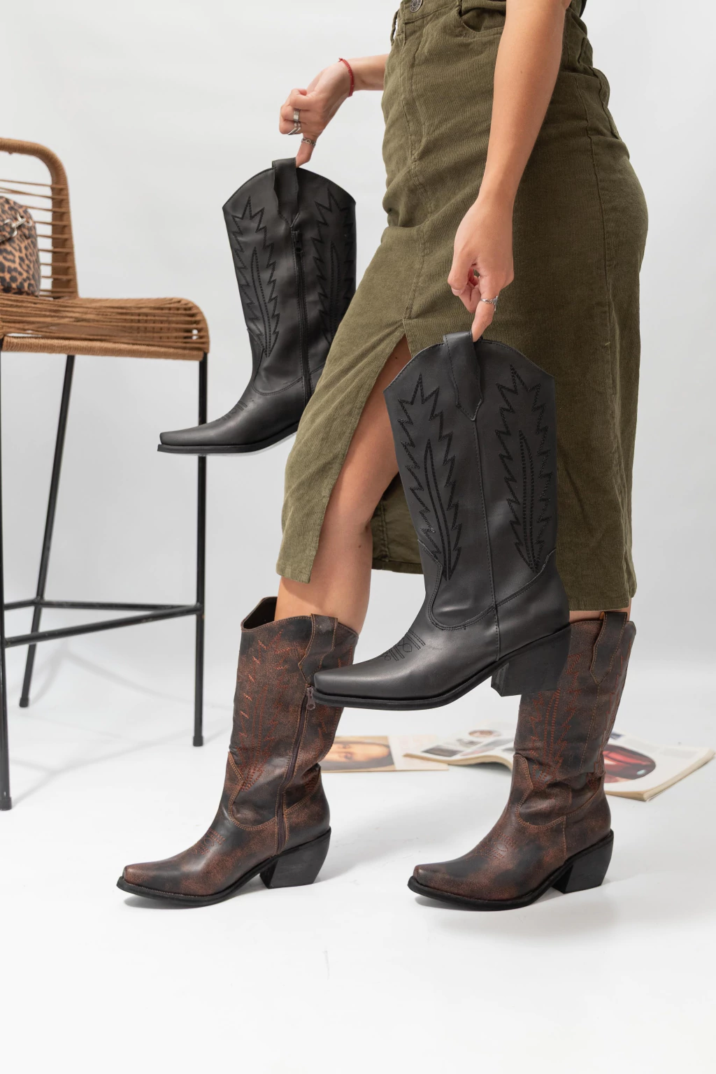 Línea eco cuero. Texanas caña alta. Detalles de bordado a tono. Muy cancheras y cómodas. Con cierre en lateral interno. Ideales para usar con vestidos, polleras, o como más te guste.