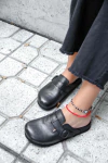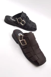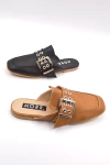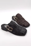Chatitas mules de cuero vacuno mujer. Su capellada está confeccionada con tiras entrelazadas y su punta es cuadrada. Diseño original y en tendencia para estar cómoda, fresca y a la moda todos los días.